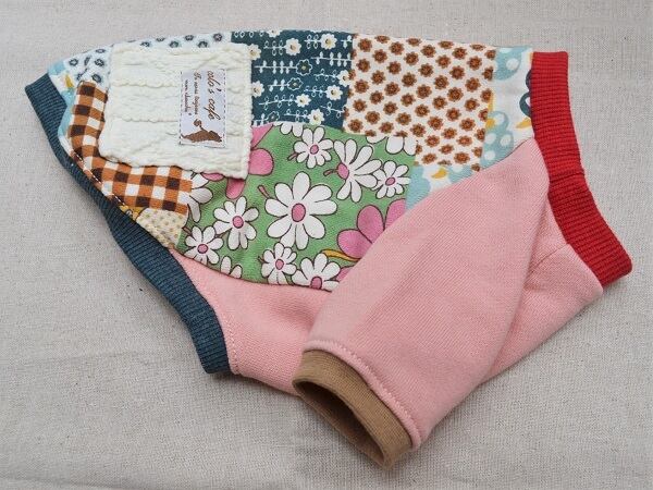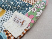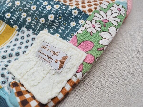 かわいいパッチワーク柄の生地にアラン編みニットで飾り付け。