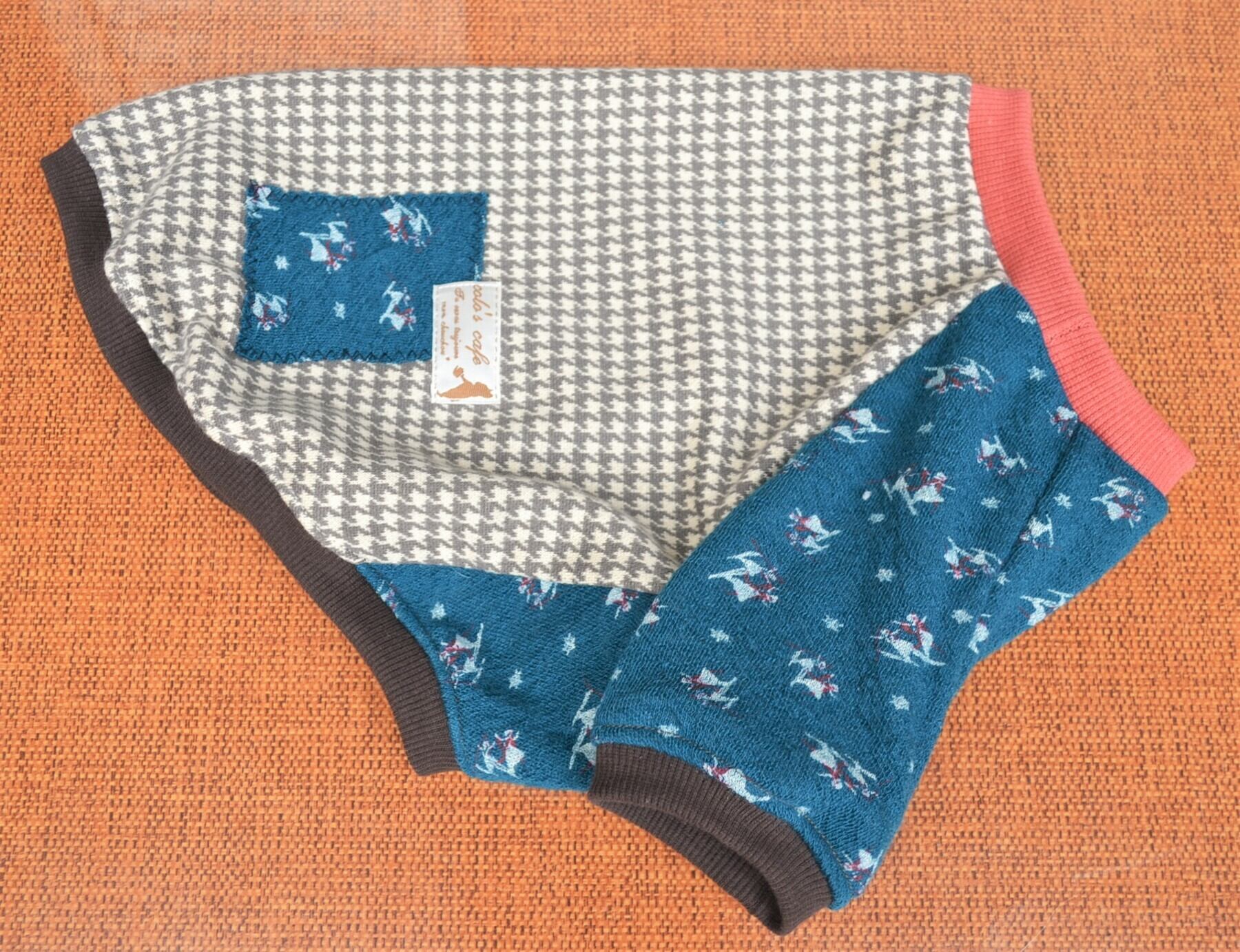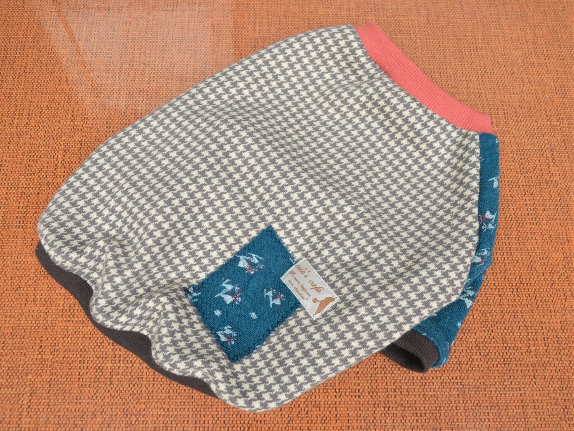 グレーの千鳥格子柄のニットとスキーダンスしている小人柄のニットを合わせました。